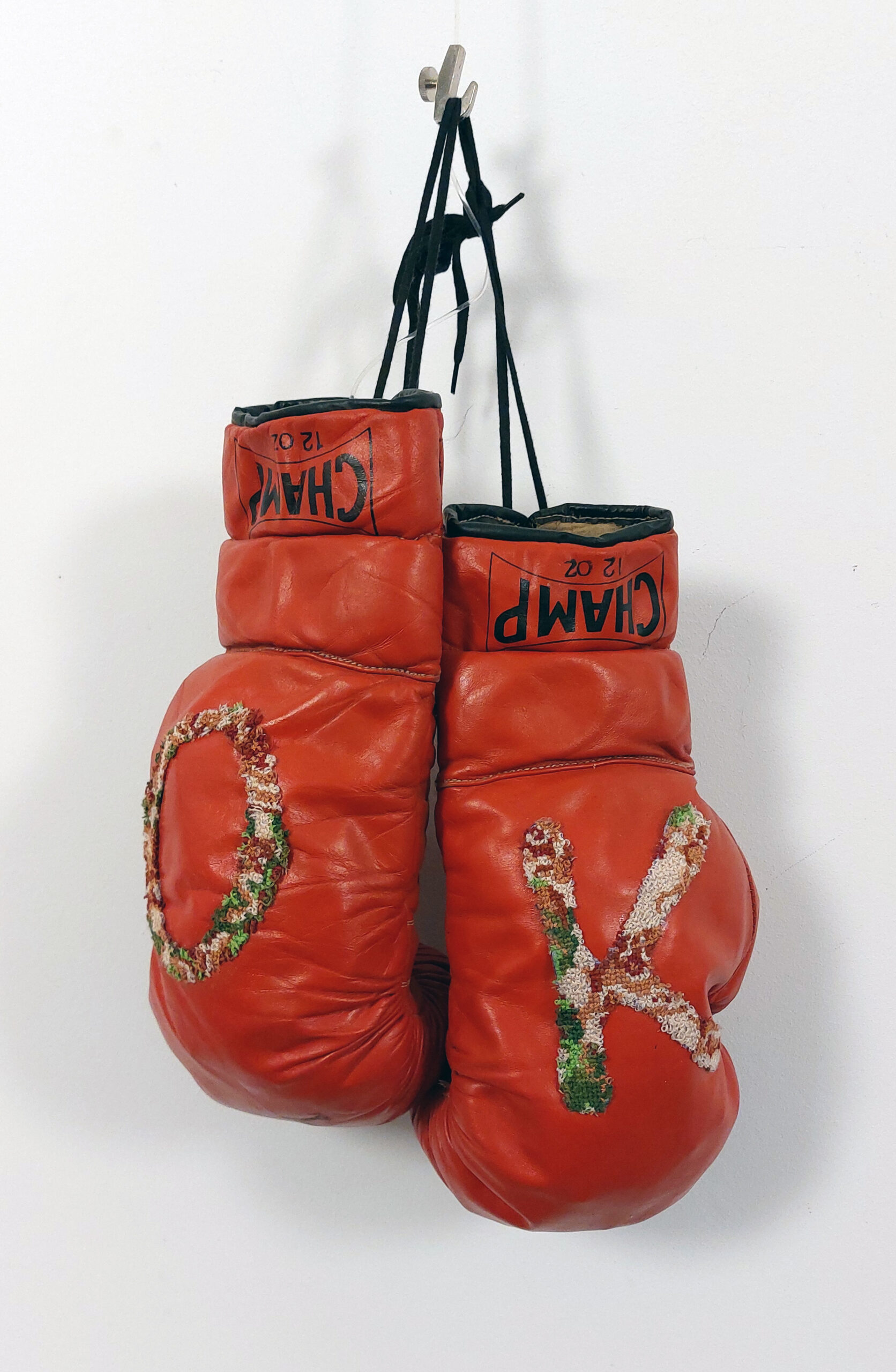 Du papier déchiré, assemblé, entortillé, enroulé, tricoté, tramé, l’artiste poursuit sa création textile par la broderie et ses petits points, de croix, de tige, avant, arrière …